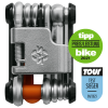 Die 18 Funktionen helfen bei fast allen Defekten weiter, es ist sogar ein integriertes Fach für den Kettenniet vorhanden. Leicht verstaut in der mitgelieferten Neoprentasche, ist man unterwegs für alle Eventualitäten gewappnet.